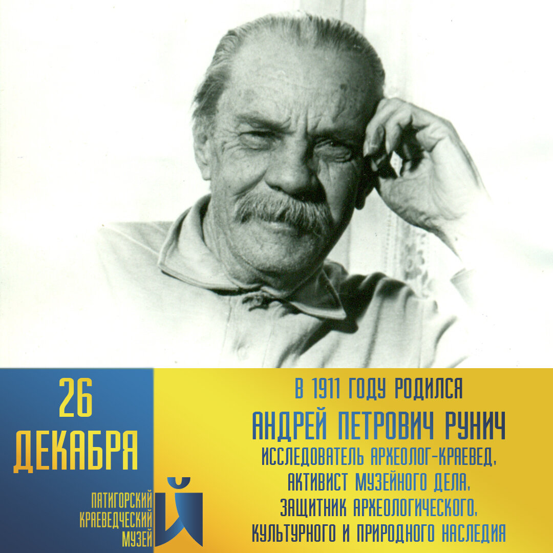 Незаурядный человек широких знаний, разносторонних интересов и увлечений, авторитетный исследователь археолог-краевед Кавминвод, активист музейного дела, защитник археологического, культурного и природного наследия, наставник молодежи, включая будущих крупных ученых, инженер-строитель по образованию, продуктивно трудившийся в организациях и учреждениях Пятигорска. Отдельные факты биографии А.П. Рунича малоизвестны и не прояснены. В советское время существовала легенда, что он выходец из семьи участника польского восстания, сосланного на Кавказ. Но фамилия Рунич не польская, а сербская. Происходил из рода кадровых военных медиков. Дед Александр являлся лекарем и служил на Кавказе. Награжден имением возле Хасав-Юрта в Дагестане. Отец Андрея Петровича Петр был военным хирургом с академическим образованием. В 1905 г. являлся лекарем 84-го Ширванского пехотного полка, в слободе Хасав-Юрт. В фамильном имении и родился Андрей Рунич в 1911 году. С днем рождения его иногда поздравляли летом, в