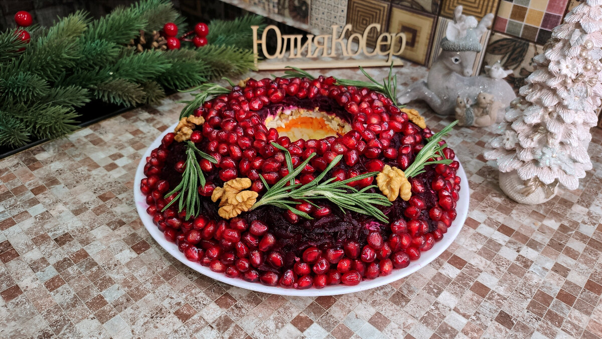 В этом видео я с Вами поделюсь рецептом вкусного салата на новогодний стол Гранатовый браслет, это довольно популярный салат о котором многие знают и любят, я поделюсь своим вариантом. Нам понадобится: