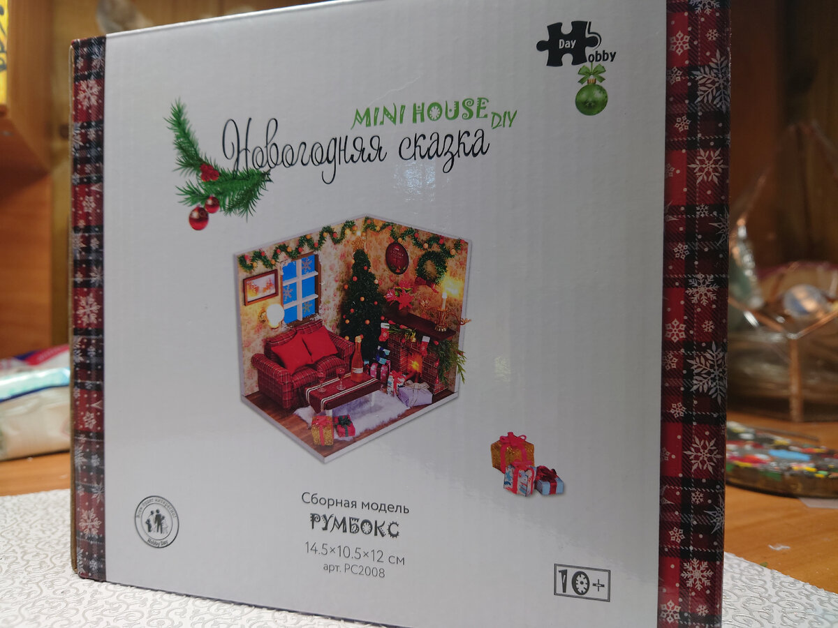Приветствую моих пушистеньких елочек и очаровательных носочков, кто заглянул в мою творческую статью! Самое время написать- это тот случай, когда срочно в номер!) Я только что забрала с пункта выдачи, преодолевая снег, бурю и холода, потрясающий румбокс- еще и в полцены! Сейчас все расскажу! Румобкс- набор деталек, которые складываются в уютную комнатку или целый домик. В отличие от Лего, все выглядит как настоящее, ничего другого не соберёшь, но такое удовольствие получаешь при сборке, даже удивительно! Я уже купила три наборчика, но мне очень хотелось что то новогоднее. Ассортимент огромен, да только вот цены...Ну, честно, отдать 2500 за два кусочка фанеры и три тканьюшки- на меня напала просто королева Жаб! А тут я увидела скидку на маркетплейсе в 50% и цена вместо 2500 составила 1200. Вот вам ссылка, если не успеют расхватать. Меня это очень удивило, но я решила рискнуть- в крайнем случае не буду забирать да и все! И вот, буквально через день мне привезли коробочку. Оказалось- все