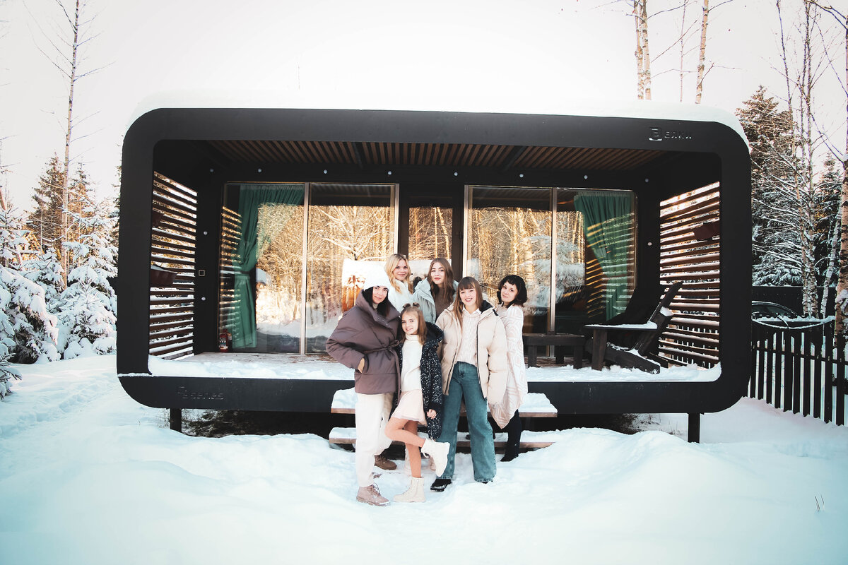 У нас есть 3 размера домика и два вида O-frame и А-frame. Первый размер S Такой домик