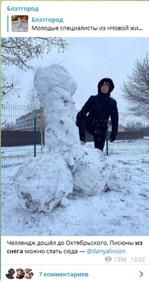 Два члена на одной фотке. Тот, который в пальто, по всей видимости, скульптор. Наверное надо родиться в Октябрьском, чтобы слепить из снега член, сфоткаться с ним и выложить автопортрет в сеть. Реальные пацаны с раёна, фигли. У них такое не зашквар. #секретыбелогорья #утюгбелогорья #белгородскаяобласть #челлендж #снеговик #зима #снег #снежнаябаба