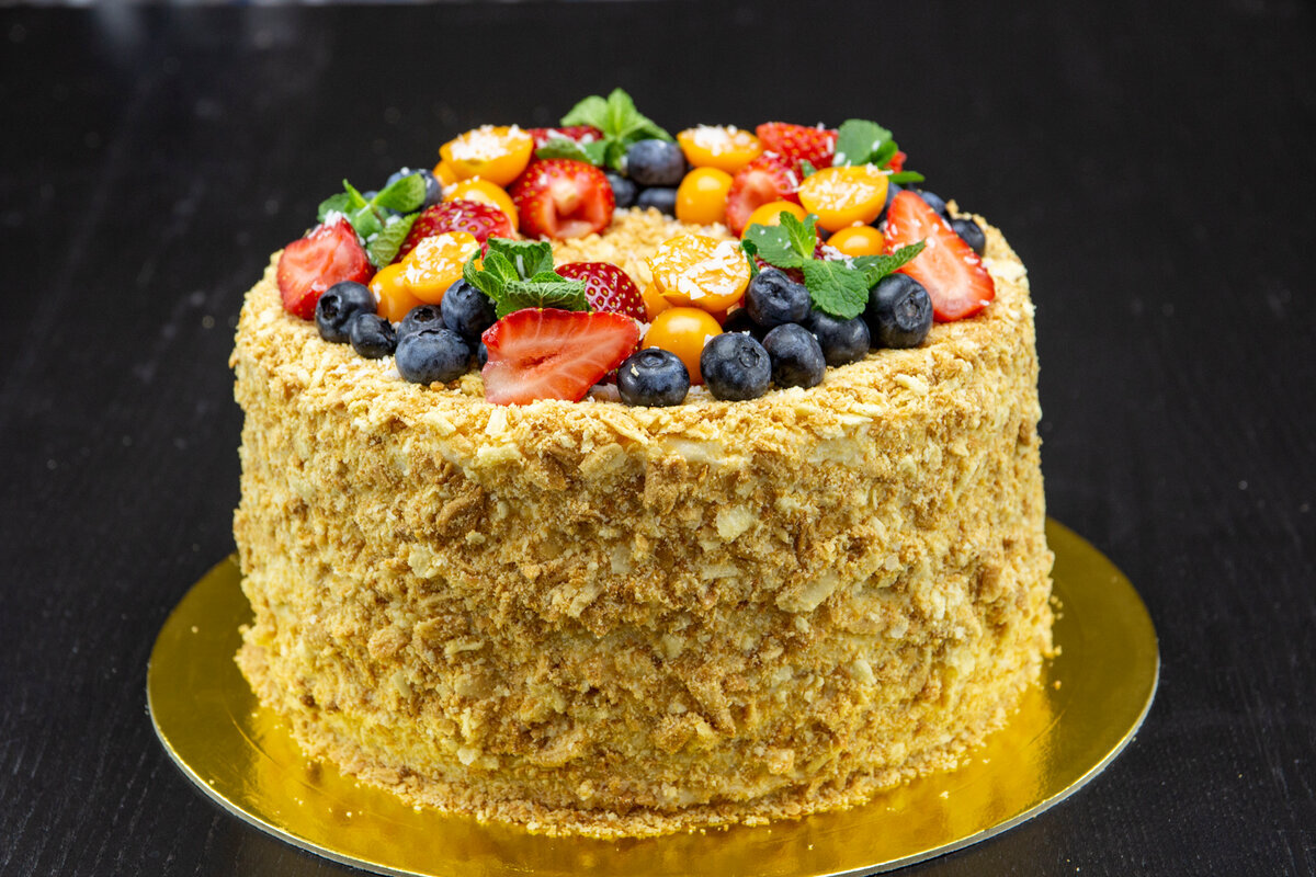 Много-много тоненьких хрустящих коржей, а между ними нежный ванильный крем, именно такой идеальный торт «Наполеон» был у нас на новогоднем столе каждый год. Он, конечно же, подойдёт для любого праздника и, каким бы Вы его не сделали большим, торт остаётся желанным до последнего кусочка. С удовольствием напоминаю Вам об этом рецепте.