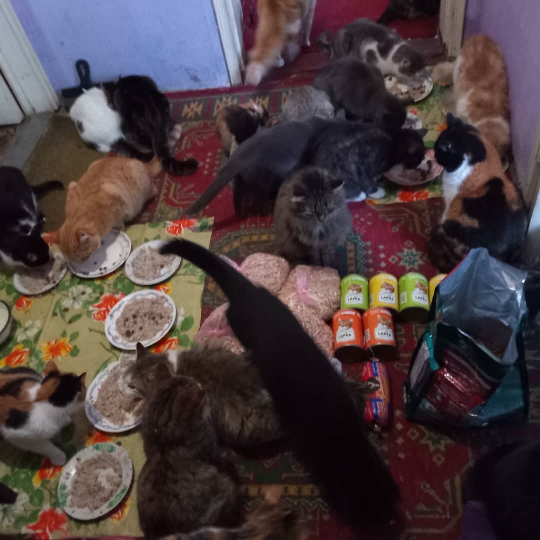 Домашний мини-приют "Рыжий кот". Благодарим всех наших друзей, кто нам помогает кормить сироток!!! С вашей помощью Марине С. удалось доделать прививки Мультифел в этом году, купить хороший препарат от блох, частично сделать стерилизацию. Вся зарплата уходит на корма и лечение брошенных животных. В приюте их уже 92, места мало, все они живут вместе с женщиной в доме, часть во флигеле. Но условия не предусмотрены держать так много животных. Они уничтожают жилище, гробят мебель. На видео 2019 год. Мебель еще была целенькая и в доме из приютских была одна кошка... С каждым годом животных становится только больше. Много болеющих, 4 почечницы на корме Проплан Ренал - это очень дорого, 15 000 1 кг корма. Приходится брать. Старенькая кошка больше ничего не ест, ее тошнит периодически, колит ее бесконечно, живем пока! Очень много молодняка, в этом году накидали, как никогда, все привиты, стерилизованы частично. Правда времени не остается на информационную поддержку приюта и определение хвостик