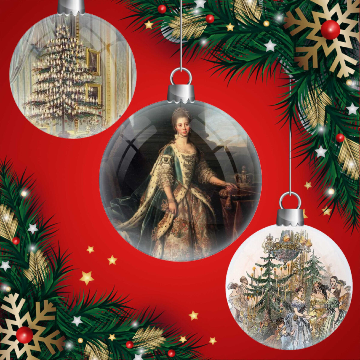 Когда юная Шарлотта покинула этот самый Мекленбург-Стрелиц в 1761 году и приехала в Англию, чтобы выйти замуж за короля Георга, она привезла с собой многие обычаи, которые окружали её в детстве, включая украшение тисовой ветви в доме на Рождество. Но при английском дворе королева превратила, по сути, частный ритуал с тисовой ветвью, что практиковался на ее родине, в более публичный праздник, которым могли наслаждаться и ее семья, и друзья и родственники королевских кровей.