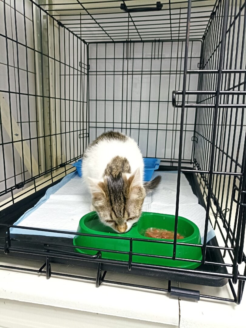 Наконец-то нам удалось попасть в стационар одной из клиник. Конечно, там малыш пока будет в клетке, в карантине, иначе никак. Его обязательно нужно ограничить от других кошек. Это очень важно.