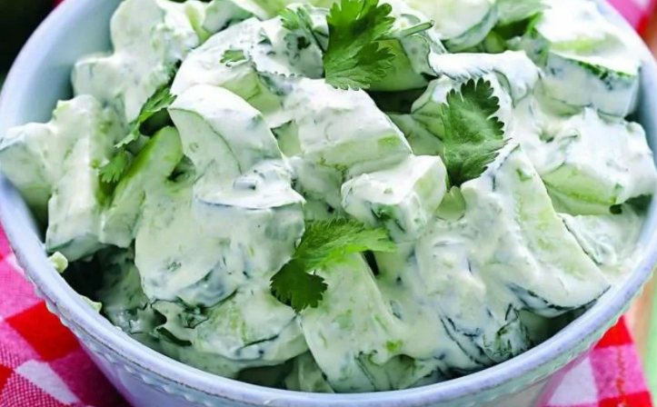 Салат из свежих огурцов в сметане Вымытые и очищенные огурцы нарезать тонкими ломтиками, уложить в.салатник. Перед самой подачей к столу огурцы слегка посолить, посыпать перцем и полить сметаной, смешанной с солью и уксусом. Сверху посыпать укропом. Подают салат к мясным и рыбным котлетам, к жареному мясу и рыбе или как самостоятельное блюдо. Салат из мяса Мясо вареное или жареное, очищенный вареный картофель и огурцы нарезать ломтиками, сложить в миску, добавив соус майонез, соль и уксус, затем все это перемешать, сложить в салат; в виде горки и украсить листиками салата, нарезанными огурцами и кусочками мяса. На 200 г мяса — 4-5 штук картофеля, 2 огурца, 100 г зеленого салата, 1/2 стакана соуса майонез. Салат из трески с хреном Сваренную холодную треску нарезать кусочками. Очищенный картофель и огурцы нарезать ломтиками. В миску положить натертый хрен, добавить соус майонез, соль, уксус, смешать с нарезанной рыбой, картофелем, огурцами и переложить в салатник. Салат украсить кусочк