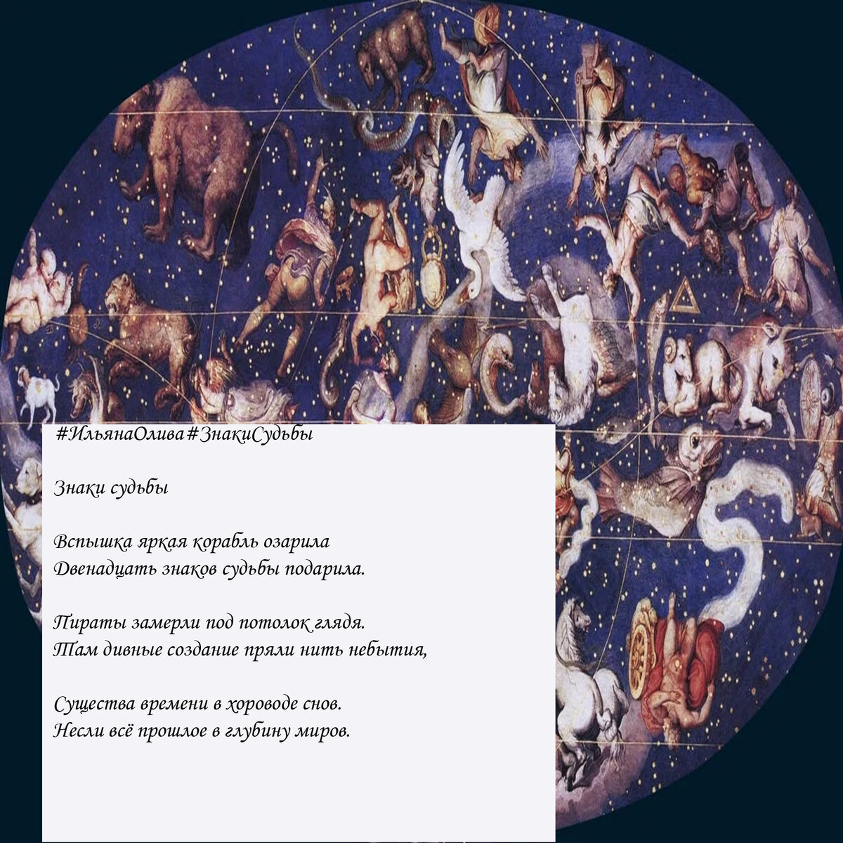 Вспышка яркая корабль озарила Двенадцать знаков судьбы подарила. Пираты замерли под потолок глядя. Там дивные создание пряли нить небытия, Существа времени в хороводе снов. Несли всё прошлое в глубину миров.