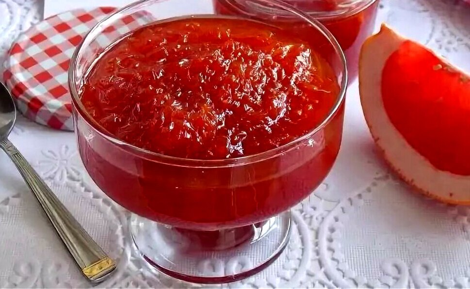 Как известно грейпфрут полезен для организма, а все потому, что он богат такими витаминами как А, РР, Е, D, B1, С. Этот фрукт поможет не только защититься от простуды и гриппа, но и улучшить цвет лица, избавиться от проблем с кожей. Полезные свойства этого фрукта сохраняются при приготовлении из него варенья, помимо всего прочего оно получается невероятно вкусным и прекрасно подойдет к чаю с тостом. Можно долго говорить о вкусноте и пользе этого фрукта, но пора и приступить к делу. Для приготовления нам понадобиться: Грейпфрута – 3 шт.; Лимон – 1 шт.; Сахар ~ 700 гр. Приятного чаепития!!!