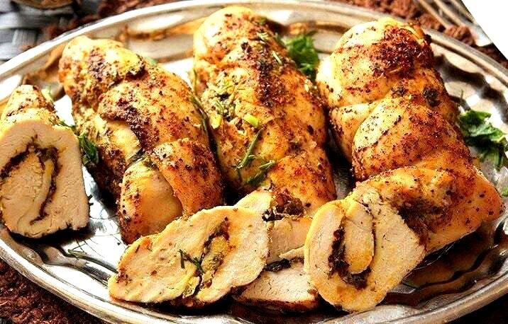 - Куриное филе обсушиваем бумажным полотенцем и обмазываем куриное филе как внутри так и снаружи, обмазав желательно стянуть веревкой, чтоб куриное филе не раскрылось в процессе приготовления.