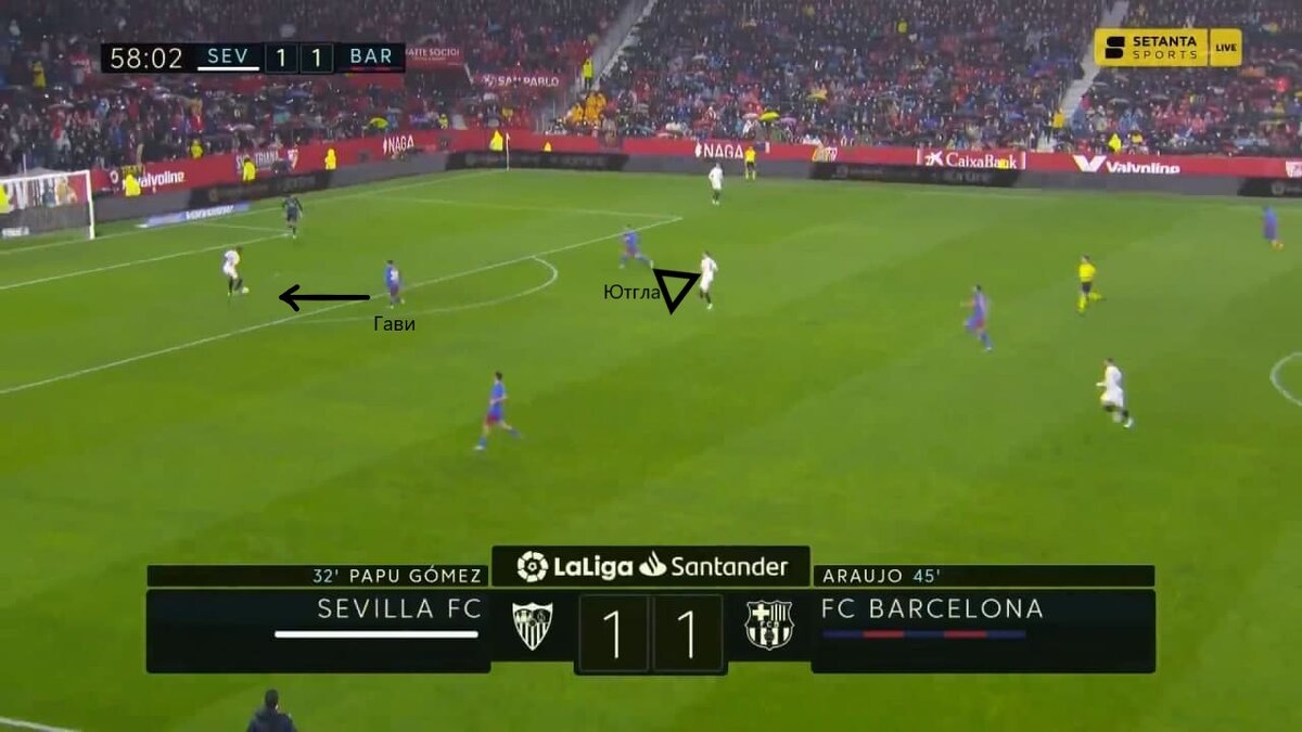 Севилья в этом сезоне играет не так уверенно и слаженно, как в прошедшем, что отразилось на результатах в ЛЧ - 3 место в слабейшей группе (хотя они, возможно, и не жалеют). В чемпионате дела лучше, но только на фоне проблемного Атлетико и кризисной Барсы. Хави продолжает мужественно преодолевать потери в составе (что же будет, когда коронавирус до них доберется...) и выставил на матч вполне предсказуемый состав. Первый тайм прошел под полным контролем Барселоны, и это удивительно, так как Севилья привыкла выманивать соперников в прессинг и проходить его. Но сегодня команда Лопетеги с этим явно не справилась: если в начале тайма еще были попытки короткого розыгрыша, то позже они перестали пытаться, потому что это приводило к очень опасным обрезкам и выносам в аут. Чтобы точнее отразить преимущество сине-гранатовых, достаточно посмотреть статистику ударов: 2-15 за первый тайм. Барселона даже установила рекорд этого сезона в Ла Лиге. Что стало причиной такого доминирования? Хороший пресси