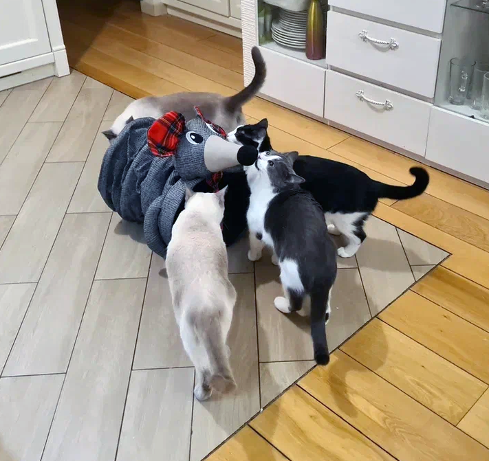 Хэштех #голубоглазая-фенечка Сделаю небольшой обзор странной (очень странной) игрушки-тоннеля для кошки. Мышекрыса это или крысомышь я пока не разобралась. Наша котобанда, похоже, тоже... По идее это тоннель. По факту - незнамочто. 😁 Я купила эту штуковину для Фенечки - очень она тоннели любит: заскакивает, выскакивает с радостными трелями. Как раз в тот день собирались ехать к офтальмологу, а потом везти Феню домой, но дом отложился, а игрушку я уж решила отдать Фенечке на растерзание. Игрушка на самом деле оооочень странная.