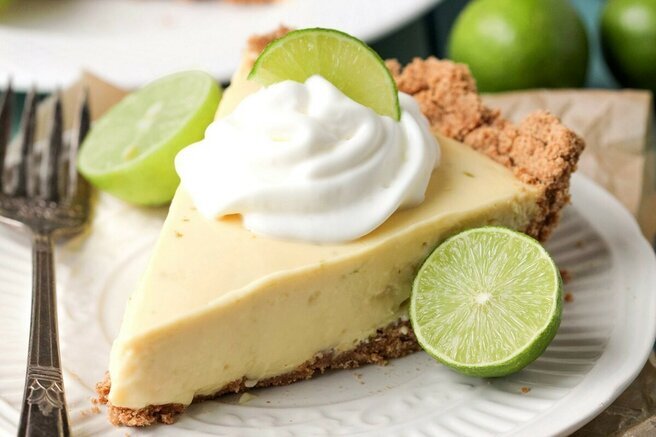 Пирог с лаймом - кисло-сладкий десерт, часто зеленоватого оттенка, происходящий из Florida Keys. Он состоит из резкого ароматного сока лайма Key, сгущенного молока и яиц, смешанных с заварным кремом. Основой служит масляное тесто из муки грубого помола, сверху украшают сладкими взбитыми сливками.