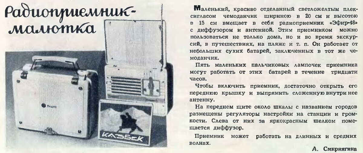 Подробно батарейный радиоприёмник «Эфир 48» был описан журнале Радио.