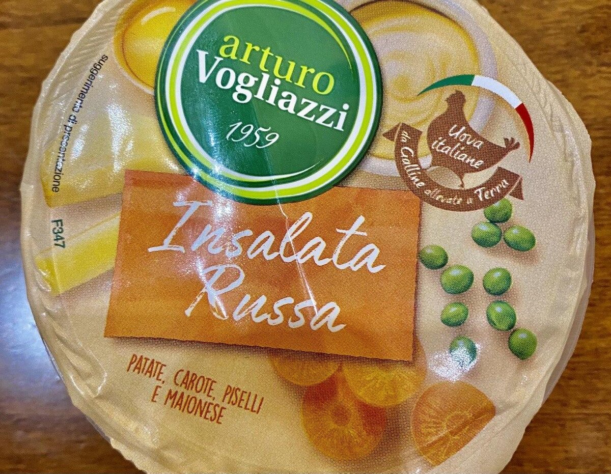 Думаю, назвали его так благодаря его огромной популярности среди русскоговорящего населения Италии, ну и в целом среди всех жителей постсоветского пространства. Обычно я предпочитаю готовить салат оливье самостоятельно по классическому рецепту, к которому привыкла с детства. Но ради интереса я несколько раз покупала его вариацию в итальянском исполнении. В некоторых итальянских супермаркетах можно купить салат "Оливье" независимо от времени года, но чаще всего, без проблем его можно найти в продаже перед новогодними праздниками. Его упаковывают в герметичные упаковки по 100, 200, 300 граммов. Честно говоря предыдущий мой опыт, по дегустации "итальянского" русского салата, не вызвал у меня восторга. В дополнение к майонезу и огурцам производители в него добавляют лимонный сок, что делает его очень кислым. А ещё вместо привычной варёной колбасы в него кладут кревет