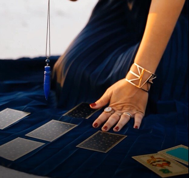 Еще один способ использования Маятника в качестве советчика. Если вам знакомы значения карт Таро, можете гадание провести с картами. Напомню, что Маятник отвечает на вопросы "Да" или "Нет". Возьмите нить любого цвета, который вам нравится. Длина нити примерно 90 - 100 см. Сложите нить пополам, вдев кольцо или маятник. Кольцо лучше взять простое, без камней. Вместо листа бумаги, как в первом способе, разложите карты. Для гадания возьмите из колоды пять карт, расположите их на столе, как в видео. Загадывайте ваш вопрос, можете проговорить вопрос вслух. Остановите ход мыслей на минутку. После этого возьмите нить с кольцом и расположите на высоте примерно 50 см над картами. Подождите, пока маятник придет в движение. "Маятник" отвечает на вопросы "Да" или "Нет". Вы можете задавать вопросы, пока не устанете или пока вопросы не закончатся) Но необходимо делать перерывы. Перерыв нужен не маятнику, а вам. Для того, чтобы отключиться от одного вопроса и полностью думать только о следую