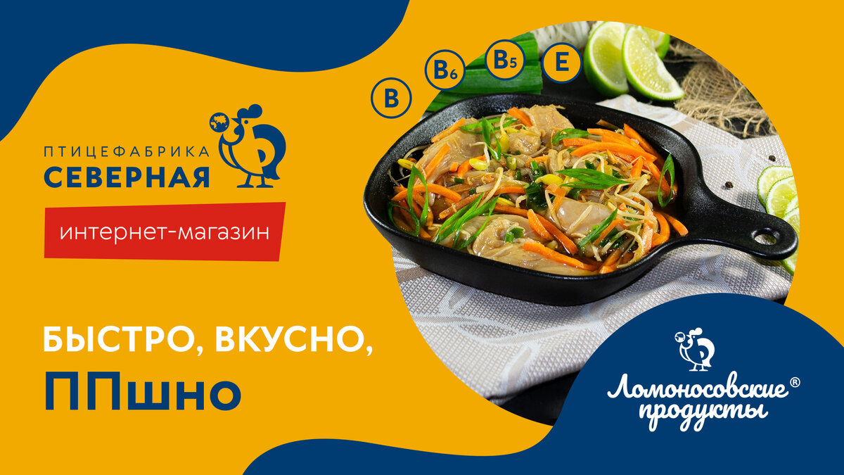 Всего 5 минут на манипуляции, 15-30 минут на плите и вкусное полезное блюдо готово. Премиальные куриные полуфабрикаты от бренда «Ломоносовские продукты» решают сразу два вопроса: что приготовить, и где найти время на готовку. 🔥 Три доказательства удобства использования полуфабрикатов из магазина ПФ «Северная» 1. Точный и сбалансированный состав Простой расчёт порции. Легко вписать в суточную норму. Калорийность блюд начинается от 90 ккал / 100 грамм. Содержание жиров и углеводов минимально. Белка, наоборот, много (14-20 грамм на 100 грамм продукта). Всё благодаря использованию куриного мяса, которое является лидером по содержанию белка при минимальной калорийности. Точные пропорции ингредиентов гарантируют соответствие указанным значениям. 2. Доставка до порога На следующий день. До 22 часов. Бесплатно при первом заказе. Вы экономите время не только на готовке, но и на покупке. Оформите заказ на сайте shop.severnaya.ru, и мы доставим его к вам домой в удобное время. 3. Простое пригото