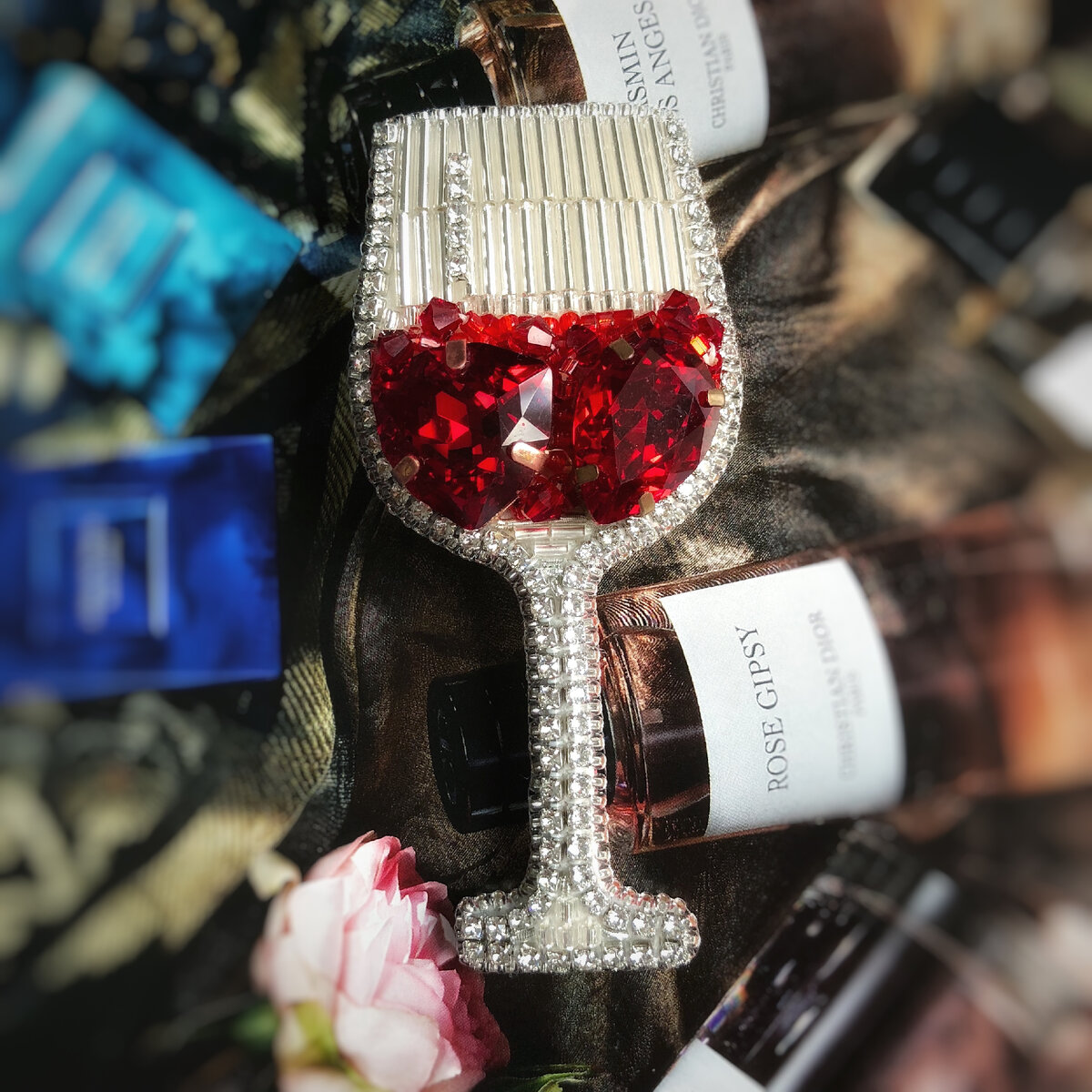 Чаще, именно к Новому Году мне заказывали броши в виде бокалов вина, бокалов с шампанским и даже в виде бутылочек с любимым напитком. Для вышивки броши в виде бокала с красным вином я использовала следующие материалы: Несколько раз у меня заказывали комплект из двух брошей в виде бутылочки шампанского и бокала с ним же. Здесь использованы следующие материалы: Комплект достаточно миниатюрный, с учетом того, что бокал должен быть меньше бутылки, а на бутылке должна присутствовать вышитая этикетка с читаемым названием. Сами по себе броши - не маленькая, но для вышивки и с учетом поставленных задач - это был минимально возможный размер в моем исполнении. Ширина ножки у бокала - всего две бисеринки - очень непросто было обрезать лишний фетр и обшивать край. За счет обшивки ножка выглядит потолще. Сейчас я чаще использую другой способ обработки края, при котором дополнительный объем практически не создается.