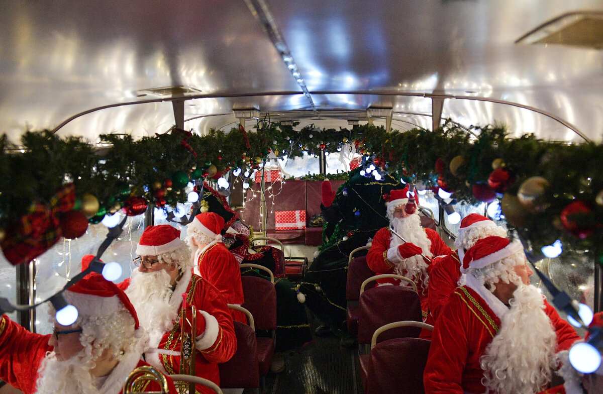 Необычный транспорт представляет собой автобус, в котором пассажиры - исключительно Деды Морозы. Средство передвижения украшено гирляндами, фонариками, коробками с подарками. Время от времени "Дедморобус" делает остановки, новогодние персонажи выходят из него и радуют горожан небольшими музыкальными представлениями.
