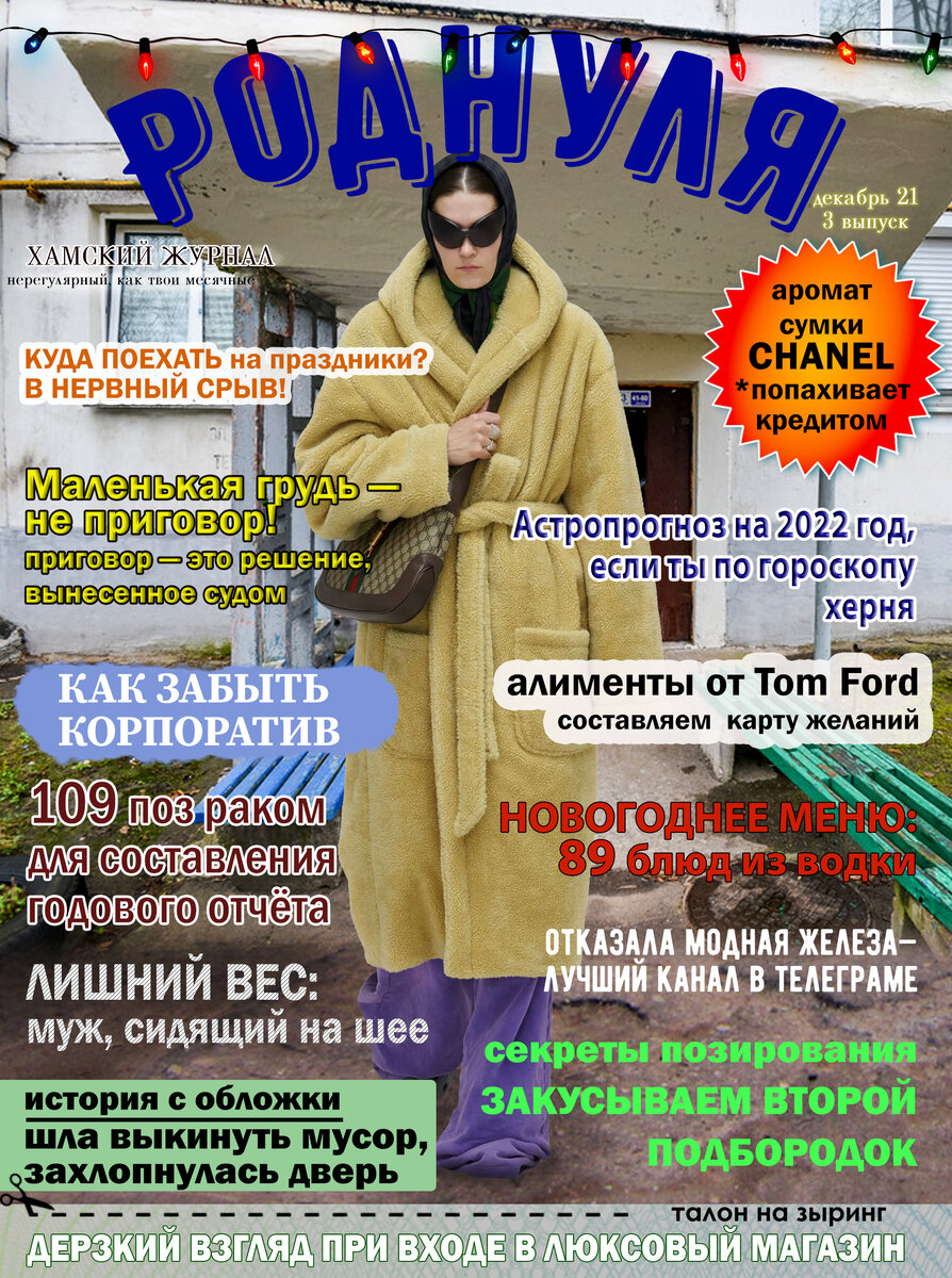 Салют, немодные! Готовы к праздникам? Ну конечно же нет, знаю я вас. Без моих подсказок ничего нарядного не купите. Хорошо, что есть постоянная рубрика "Отказала модная железа". 1. Начнём со свежей прессы. Третий номер журнала "Роднуля" туточки. 2. Галоши космические. Празднично летать по родному колхозу. Нарядные подкрадухи из ПВХ от Balenciaga 41 364 ₽ (€497) 3. Ёдзи Ямамото пришёл рвать наши гольфы и душу. Как видите, гольфы он уже порвал. Yohji Yamamoto 8 808 ₽ ($120) 4. Gucci, на вашей даме очень мало сумок, доработайте! Опять мне всё за них делать. 5. Трусы мужские "Многообещающие" . На корпоратив. Отплясывать. Martine Rose 21 033 ₽ ($285) 6. Год был тяжелый. Masha Popova 122 849 ₽ ($1664) 7. Даже насадка для швабры Лайма сделала неплохую карьеру, а ты нет. Клатч Bottega Veneta 175 942 ₽ ($2350) 8. Платье "Финансовое благополучие". Заряжено на поток благосостояния. Прогнозирую, что количество желающих наполнить ваши кошельки увеличится. Moschino 205 165 ₽($2780) 9. Всем хорошо э