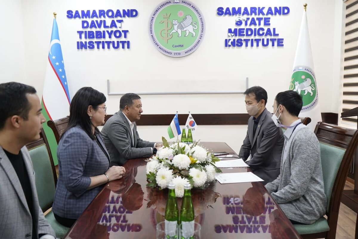 Самаркандский государственный медицинский институт посетила с рабочим визитом группа представителей корейской компании KOFIH (Korea Foundation for International Healthcare) во главе представителя компании в Узбекистане Dr. Sebastian Yoo. KOFIH (Корейский фонд международного здравоохранения) это организация занимающаяся реализацией ряда благотворительных проектов в сфере здравоохранения, в том числе и в Узбекистане. Членов делегации принял ректор института профессор Жасур Ризаев. В ходе плодотворной беседы между сторонами была достигнута договорённость о реализации в институте проекта EMS (Emergency Medical Service). Это учебные курсы для врачей и фельдшеров скорой помощи по совершенствованию знаний и навыков в сфере оказания неотложной медицинской помощи на основе передового опыта корейского здравоохранения. СамГМИ будет выдавать международно-признаваемый сертификат который будет заверен обеими сторонами. В настоящее время схожий симуляционный центр уже в течение года функционирует в Т