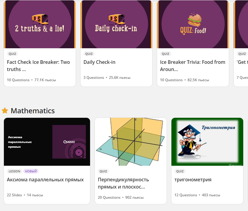 В октябре-ноябре я проходила курсы. Записали от школы. Учителя к любым курсам относятся негативно. За редким исключением это пустая трата времени. И вот мне повезло. Курсы оказались полезны. Тема курсов: цифровые инструменты для ДО и оценивания учащихся. (сформулировано мной по памяти). Мне актуально. У меня большие классы. Про некоторые платформы я знала, но не пробовала (я писала, что уже не веду онлайн, а что-то новое регулярно появляется), а некоторые стали открытием. Главное, что сервисы бесплатны и могут использоваться в классе, а не 1 на 1. Проверить знания можно на Quizizz, это сервис для создания викторин, он ценен тем, что там можно выбрать уже (чей-то) готовый тест по той или иной теме. Еще предложили BrandQuiz (+/- то же самое) и Onlinetestpad - знаю, он многим нравится, но мне оказался неудобен. 2. Из того, что предложили для создания опросов, я выбрала старые добрые Гугл формы. 3. Создание уроков. Репетиторы обычно используют онлайн доски или комнаты в зум. Но это хо