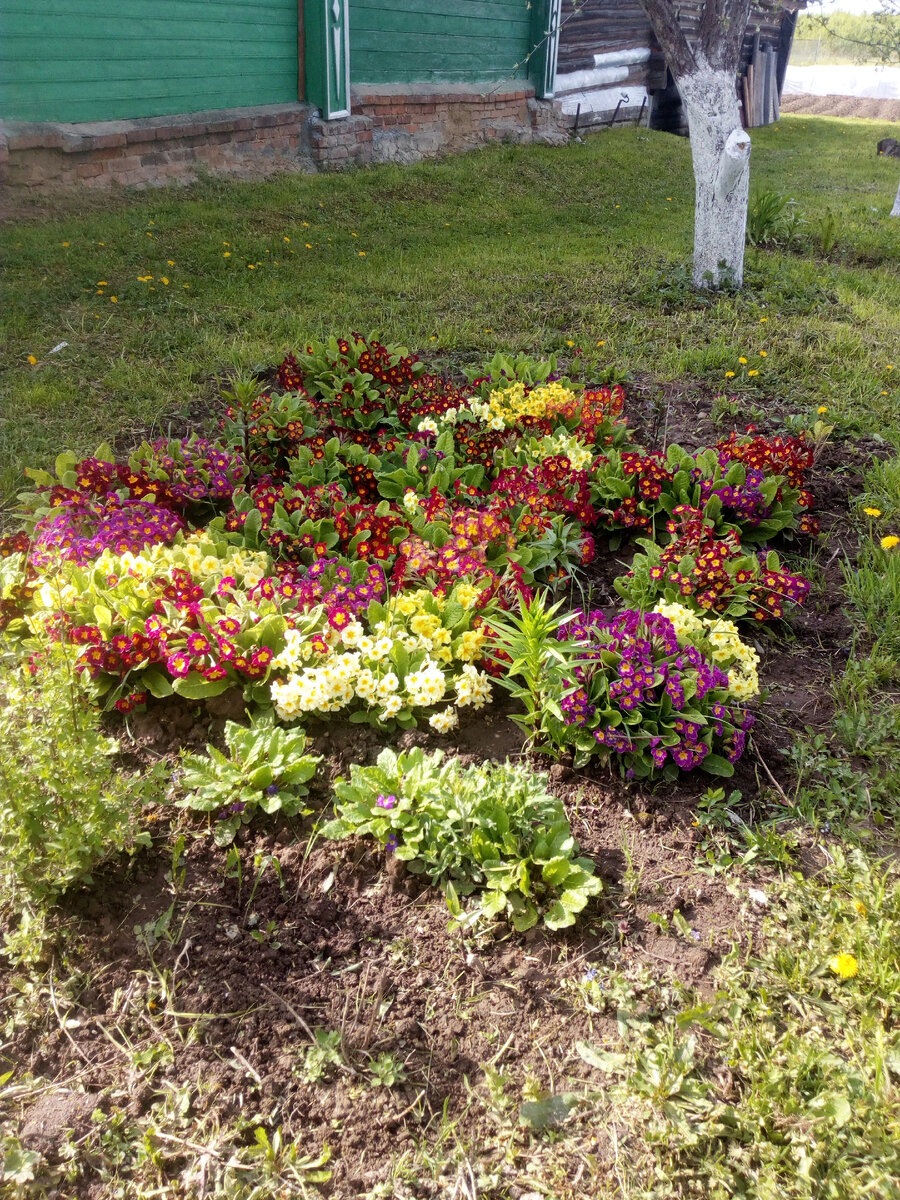 Примулы. Я в них влюбилась сразу и навсегда. Без проблемные цветы . Посадила и всё. Я в этом году их не поливала , хотя было очень жарко , руки не доходили. Осенью они у меня не цвели. Но весной просто прелесть. Сами потом сеются даже на газоне, кусты разрастаются.