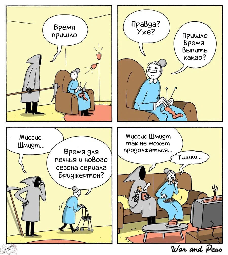 Это комиксы сразу двух авторов, которые рисуют в одной тематике, стилистике и публикуются в одном аккаунте. Елизавета Пинч и Джонатан Кунц - в своих комиксах используют черный юмор. И не только его конечно, но более взрослые работы я не решилась взять, да и показались они мне не такими уж и интересными. Да, я не люблю пошлость ради пошлости. Я взрослый человек и в компании друзей или коллег, могу пошутить на эту тему, но мне не нравится, когда все это вываливают на публику. Я возможно зануда, но я также не люблю разговоры по телефону в общественном транспорте, особенно если они личные. Передо мной словно открыли дверь в чужую жизнь, о чем я не просила, а потом силком заволокли внутрь и проводят экскурсию по самым грязным углам комнаты. А ты ходишь следом и сказать ничего не можешь, потому что воспитание не позволяет обидеть человека. Не знаю, но я правда чувствую себя именно так. Потому это просто знакомство с авторами, которых я точно не буду дальше брать к себе на перевод. Хотя у н