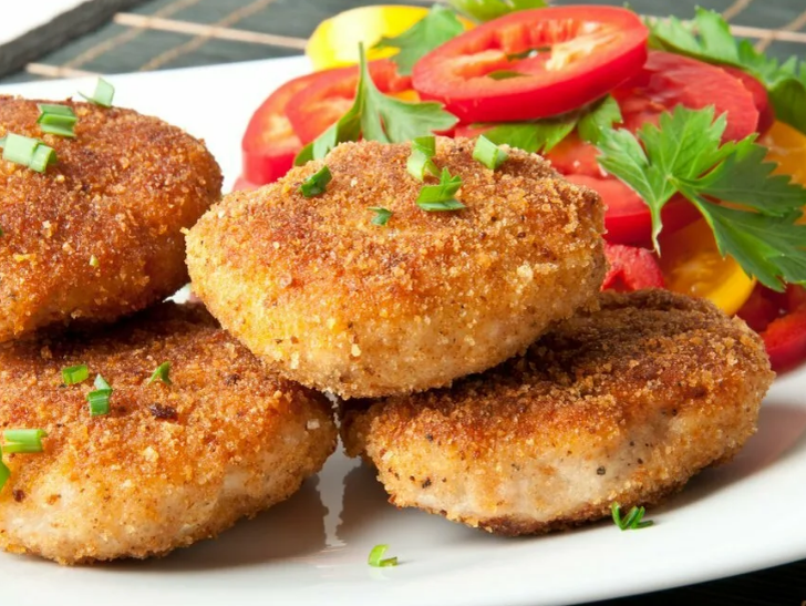 Котлеты и битки Приготовить фарш, разделать из него котлеты продолговатой формы или круглые битки, обвалять их в сухарях и подровнять ножом. После этого котлеты или битки положить на разогретую сковороду с маслом и, обжарив одну сторону, перевернуть и жарить до готовности (8—10 минут). Котлеты часто получаются либо сухими, недостаточно сочными, либо слишком жидкими, расползающимися. Чтобы этого не было, надо точнее соблюдать рецептуру. Лучшим мясом для котлет является кострец, хотя и другие части мяса (только не супового) вполне пригодны для этой цели. Белый хлеб для котлет должен быть обязательно черствым, количество его по отношению к мясу — 25%. Воды берется около 25—30% к весу мяса (на 1 кг мяса стакан или немного больше тонкого стакана). Более вкусные котлеты получаются, если заменить воду молоком или мясным бульоном. Хорошо добавить в котлеты немного сливочного масла или свиного жира. Крышкой или миской сковороду при жарке котлет закрывать не следует. На гарнир к котлетам