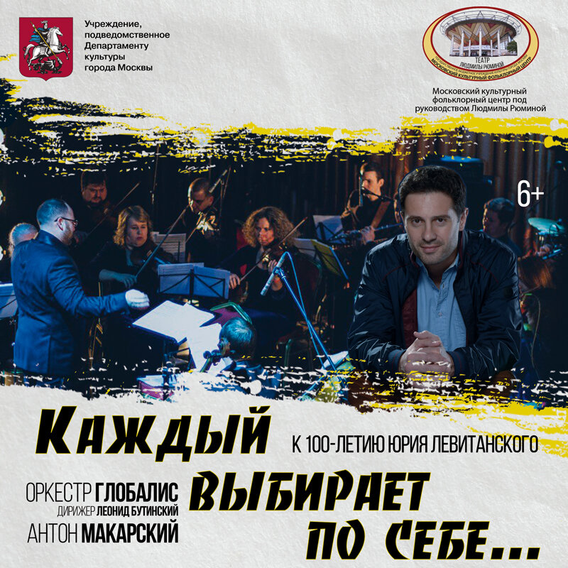 Фонд «Глобалис» представляет концертную программу, посвящённую 100-летию выдающегося российского поэта последней трети XX века Юрия Левитанского с участием Антона Макарского и оркестра «Глобалис». Любимые многими шедевры поэзии будут исполнены известным российским актёром и певцом Антоном Макарским при участии струнного квартета «Глобалис». В программе также прозвучат знаменитая «Belle» из мюзикла «Собор Парижской богоматери», «Вечная любовь» из кинофильма «Тегеран 43» и другие хиты из мюзиклов и кинофильмов, которые Антон Макарский споёт в сопровождении оркестра «Глобалис» под управлением Леонида Бутинского. Юрий Левитанский (1922–1996) – поэт интеллектуального склада. Свои мысли и наблюдения он передаёт в стихах, как бы сохраняя определённую дистанцию. Антон Макарский – один из самых романтичных актёров российского кинематографа. Обладатель уникальной харизмы и неповторимого тембра голоса, что позволяет ему состоять в плеяде поющих актёров на российской эстраде. Оркес