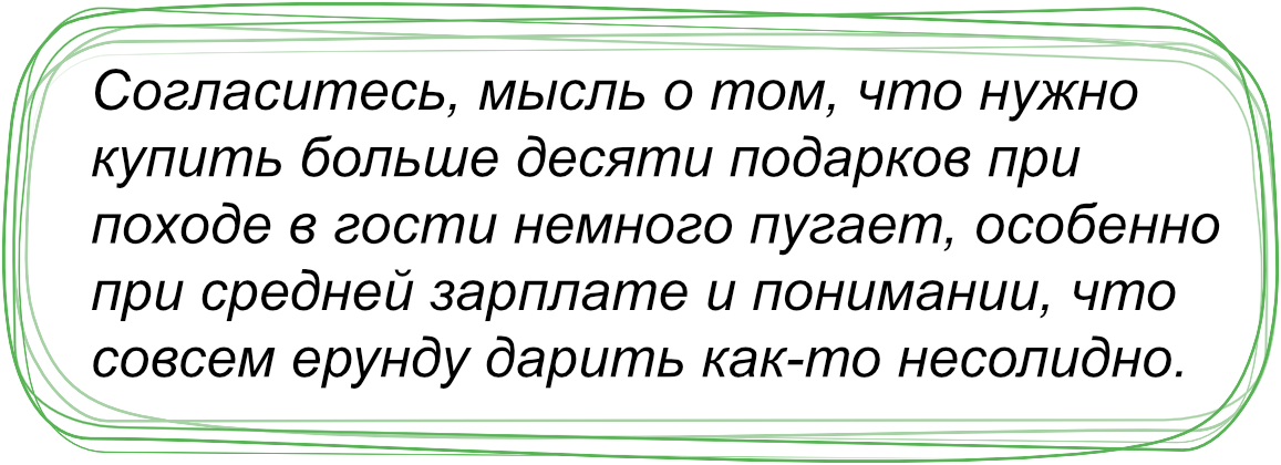 Поэтому, когда мы выросли, то предложили выход из ситуации: играть в «Тайного Санту».