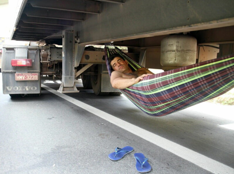 1. Как дальнобойщику немного передохнуть между рейсами, когда он в дороге? Да просто-напросто повесить гамак под прицеп и дело в шляпе! 2. Можно ли классно выглядеть и при этом работать водителем большегрузного автомобиля? Да, стоит лишь чаще устраивать солярий прямо на дороге. 3. Что настоящий шофёр фуры обязательно держит в рундуках про запас? Как что, побольше нефильтрованного пенного напитка! 4. Как быть жителям зарубежья, у которых нет возможности купить нормальный трак? Кататься на том, что есть на данный момент и не париться! 5. Может ли старая американская полуторка перевезти большой седан? Конечно, может, только чтобы грузовик был с домом на седле! 6. То самое нелепое чувство, когда вместе с родственниками едешь с Сенного рынка, и реально набрал много всего лишнего, а выбрасывать жалко. 7. Как можно сломать один из самых больших грузовиков на планете, БеЛАЗ? Так же, как и остальные – просто немного перегрузив его! 8. Стоит ли говорить, что у руля страны может быть не то