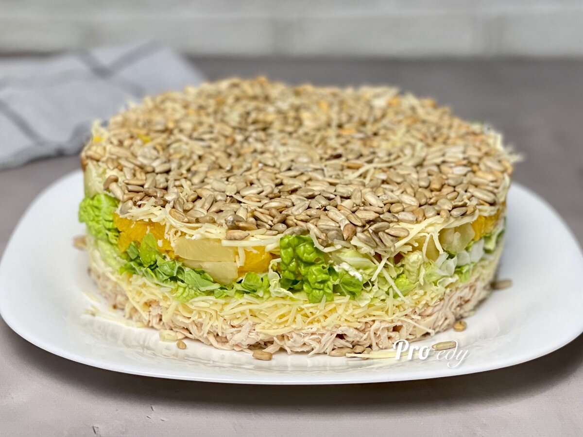 Для меня это абсолютно незаезженный и при этом довольно простой рецепт салата. Хотя сочетание некоторых ингредиентов в этом салате меня смутило поначалу... Здравствуйте, уважаемые читатели! Меня зовут Ирина, и я рада приветствовать вас на своём кулинарном канале! Часто в ожидании гостей мы начинаем искать рецепты необычных блюд и закусок, которые бы ничем не напоминали классический "Оливье" или "Мимозу". Но часто попадаются очень сложные рецепты, требующие больших растрат и занимающие на приготовление много времени. Рецепт салата, который я хочу вам предложить сегодня, готовится быстро, да и набор продуктов достаточно прост. Думаю, что такой салатик очень хорошо подойдёт к бокалу шампанского на Новый год! Как готовлю: Все ингредиенты подготовлены, осталось собрать салат. Салат я буду собирать слоями и на каждый слой наносить сеточку из майонеза. Убираю салат в холодильник, чтобы немного пропитался, но можно и сразу подавать. Готовьте на здоровье! Вкусных вам праздников и отличного нас