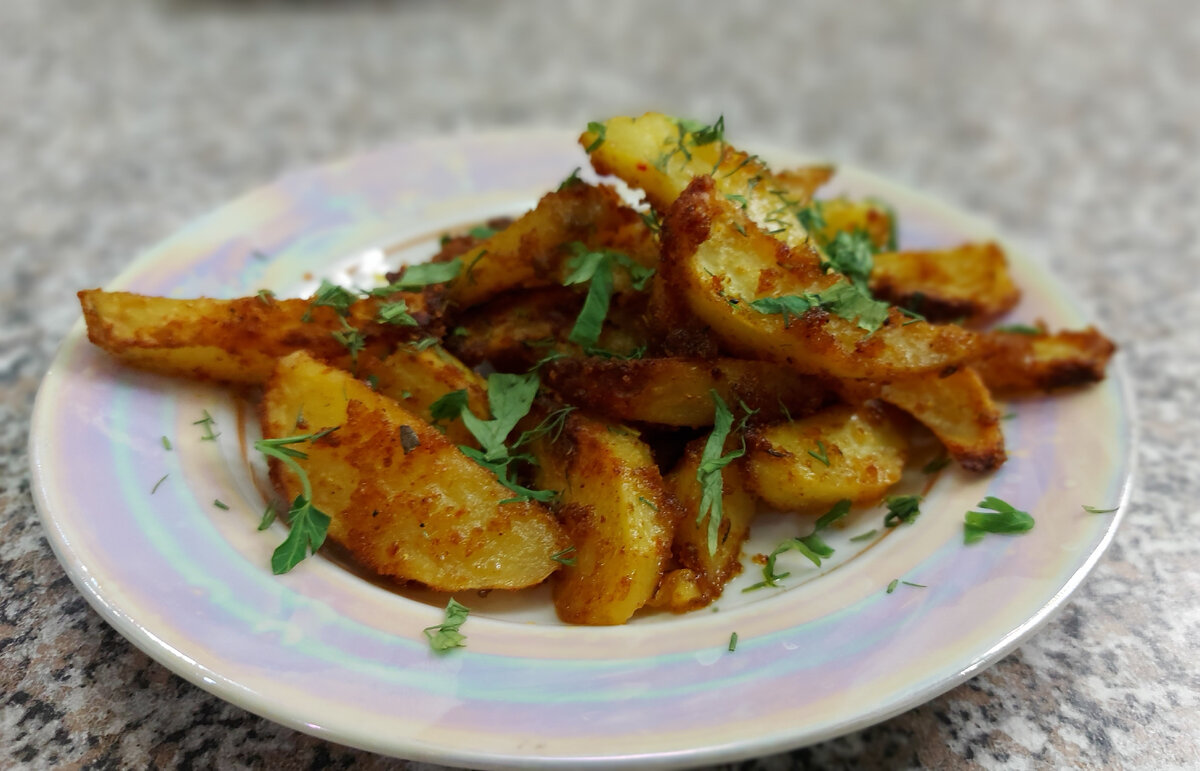 Картофель по-деревенски - это не только прекрасный гарнир к мясу и рыбе, но и превосходное самостоятельное блюдо. И, даже если жареный картофель считается наивкуснейшим блюдом, запеченный в духовке не менее вкусный и тем более намного полезнее жареного или картофеля фри. Готовится картошка по-деревенски менее часа, что позволяет заняться приготовлением салата и сервировкой стола. Единственный минус картошки по-деревенски - это то, что ее нужно почистить.😊 Итак, 1. КАРТОФЕЛЬ по праву называют вторым хлебом. Калорийность в 2-3 раза выше калорийности других овощей. Содержит углеводы (крахмал и клетчатку) и калий, немного витамина С. Большим спросом у человека пользуется хрустящий картофель, который, как многие считают, можно получить только путем его жарки во фритюре. Но, благодаря рецепту Картошки по-деревенски, получается не менее вкусный и хрустящий продукт. Хранить это блюдо рекомендовано до двух дней, так как применяемый по рецепту растительный жир быстро прогоркнет, да и картофел