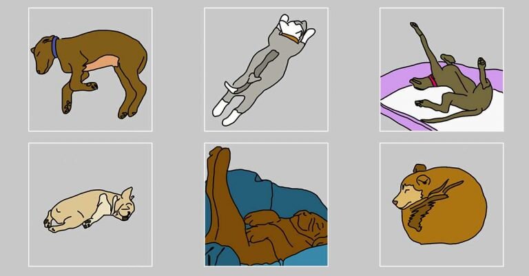 Собаки очень быстро подстраиваются под режим семьи, но в отличие от человека, они часто чередует фазы сна и бодрствования. Собаки спят намного больше человека. В среднем 12-14 часов. Продолжительность сна зависит от породы: крупные собаки спят обычно дольше своих маленьких собратьев. А продолжительность сна щенков может достигать 18-19 часов в сутки. Фазы сна У собаки, как и у человека две фазы сна. 1.Фаза быстрого сна. В этой фазе собака спит вытянувшись на спине или боку. Она выбирает для этого ровные и большие по площади поверхности: пол, кровать, диван. В этой фазе сна часто можно наблюдать подергивание конечностей, скулеж. 2. Фаза медленного сна. В этой фазе дыхание собаки очень глубокое, мышцы расслаблены. Для этой фазе часто выбираются мягкие возвышенности: диваны, кресла, большие подушки. Позиция тела во сне и регулирование теплообмена. 2. Если собаке холодно, то она сворачивается клубком на теплых поверхностях. Эмоциональное состояние 3. Если собака часто выбирает позу, разва