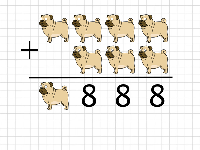 Эта статья для родителей, школьников или просто любителей головоломок. Математические ребусы развивают логику, память, решать их очень полезно не только детям, но и взрослым. Ответы и решения, как всегда, вы найдёте в конце статьи. Сегодня мне попался на глаза симпатичный клипарт с собачками и я захотела составить из него головоломки. Вообще очень люблю собак, надеюсь, вы тоже. Во всех ребусах нужно найти неизвестные числа и вычислить результат. Обратите внимание, что разные породы собак означают разные числа. Чем больше видов - тем больше переменных и труднее задание. Считаем в столбик Первый тип головоломок - это вычисление суммы/разности в столбик. Здесь работают те же правила, что мы используем при вычислении в столбик. Разница лишь в том, что некоторые цифры заменены собаками. №1. Мопсы и сложение. Это простая задача для разминки. Здесь всего одно неизвестное число, которое вычислить очень просто. Найдите, чему равен мопс и полученная сумма. №2. Опять сложение. Здесь уже две пер