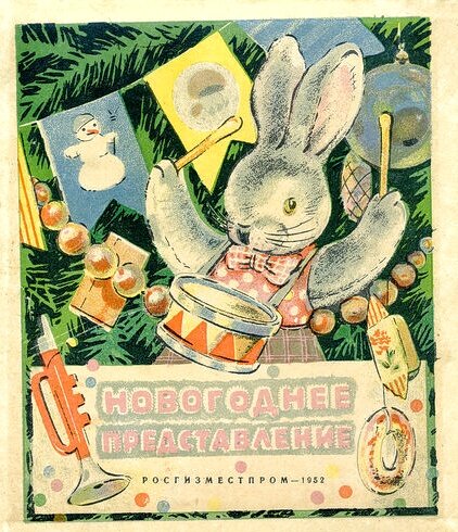 Нашла книжку очень давнего года издания — 1952-го. В тот год родилась моя мама. Эти иллюстрации мне очень интересно смотреть по нескольким причинам. Во-первых, автор и стихов, и картинок в книжке один. Это Константин Васильевич Зотов (7 ноября 1906 — 8 января 1990) — советский график и художник мультипликации. Поэтому между словом и картинками здесь полное соответствие. Во-вторых, по иллюстрациям интересно посмотреть, как наряжали ёлки семьдесят лет назад. А, в-третьих, все животные тут нарисованы понятными даже для самых маленьких детей! Обязательно покажите эту книжку своим малышам! Здесь заяц похож на зайца, а слон — на слона. Подумалось, что флажками мы и сейчас можем украсить нашу лесную красавицу. Надо взять цветную бумагу и занять своим младшим детям несколько вечеров! А одна игрушка, из тех что висят на нарисованной ёлке, была и в моём детстве! Это стеклянная шишка. Ещё помню дудочку с обложки и мячик с полоской посередине. А вы заметили в книжке знакомые игрушки? Поделите