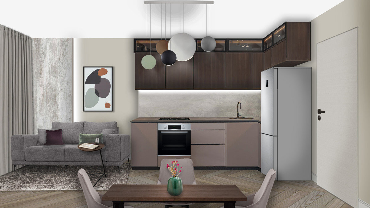 Подборка предметов интерьера по коллажу кухни-гостиной