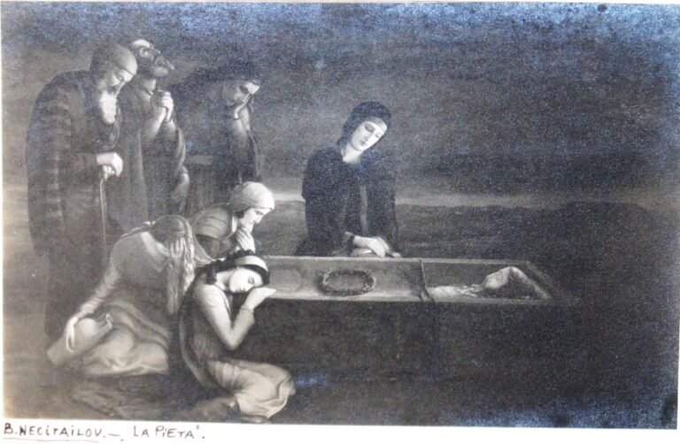 Это полотно под названием "Пьета", созданное в 1947 году, приобрел Папа Римский Пий XII для коллекций Ватиканского музея. А эта картина, над которой художник трудился пять лет с 1950 по 1955 под названием «Чудесный лов (Призвание апостола)», посвящена апостолу Андрею Первозванному и украшает кафедральный собор Амальфи. В крипте этого собора почивают мощи апостола Андрея. Художник создал немало произведений христианско-католической тематики, в том числе, картины «Мадонна Иммаколата» («Амальфитанская Мадонна»), «Рождество Христово» и «Благовещение» для Русско-каталической церкви св. Антония в Риме. Для собора города Позитано созданы композиции «Прибытие иконы богоматери в Позитано» и «Коронование [иконы] Девы Марии». Согласно ренессансной традиции, среди персонажей художник изобразил жителей Позитано и Амальфи, в том числе и себя. В знак признательности за труды на благо города муниципалитет Амальфи в 1950-ых годах передал художнику для мастерской прибрежную виллу, назван