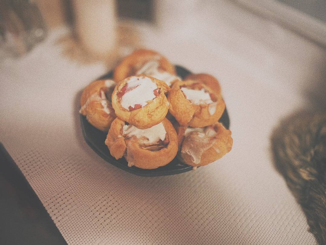На самом деле, эта выпечка — нечто среднее между синнабоном, штруделем и яблочной плюшкой. Так сказать, вобрала в себя все лучшее сразу 😄 В общем, вы просто попробуйте, потому что это нереально вкусно. Ингредиенты: тесто слоеное дрожжевое, яблоко, сметана 10%, сливочный сыр, по вкусу корица и сахар (или сахарозаменитель) Способ приготовления: Достаем лист теста и оставляем на 1,5 часа при комнатной температуре. Я использую «Тесто Цезарь со сливочным маслом», одно из лучших, не подгорает, дает отличный вкус. Очищаем яблоко от сердцевины и косточек и нарезаем тонкими ломтиками. Хорошая новость для ленивых людей вроде меня: кожуру можно не счищать. Слегка раскатываем тесто. В его описании советуют растягивать его руками или вообще не менять форму, чтобы выпечка получилась более пышной, так что по желанию следуйте этой инструкции, а не моей 😊 На тесто выкладываем яблоки и обильно посыпаем их корицей и сахаром (или сахарозаменителем). Смачиваем руки холодной водой, чтобы тесто не прилипал