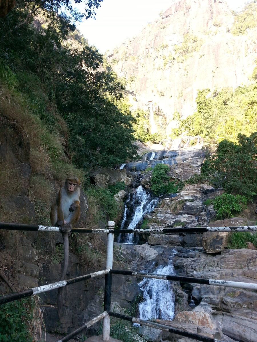 Рано утром у водопада были только вездесущие цейлонские макаки.