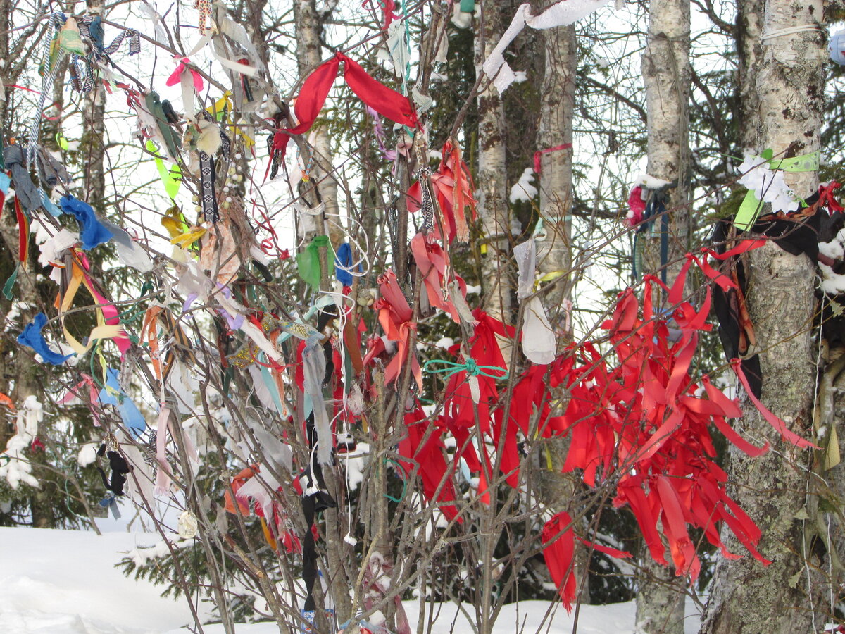 ПУТЬ БЛАГОВЕСТИЯ - РАЗРУШЕНИЕ ТВЕРДЫНЬ ДИАВОЛА. В тундре Мезенской, на границе Мезенского района и Ненецким округом стоит "священная" языческая роща малых деревьев, куда сотнями лет приезжают представители малых кочевых народов Арктики за тыс км и выбирают там часть дерева для изготовления божков, которых передают из поколения в поколение, поклоняясь им. При приближении к данному месту мы не знали что там есть на самом деле, но дух был возмущен и вид открывшийся оправдал это состояние. Реально ощутимо присутствие бесов и злых духов. В угоду им многие путешественники повязывают эти ленты и оставляют много им нравящихся предметов, порой необходимых в жизни в жертву бесам и их роще. Мы молились там и молитва была особенной, но есть потребность, чтобы Господь дал свободу народам от демонов и освободил их от влияния сатаны. Помолитесь дома о таком разрушении дел сатанинских и созидании Тела Христова и Царствия Божия через Его посланников. Это не поодинокие капища и места поклонения, но поме