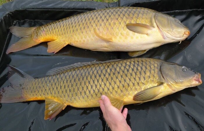 Сразу же по прибытии Васильевич дал мне донную снасть, собранную по указанному выше сценарию, а также поплавочную матчевую снасть, на которой я заменил лишь крючок, захваченный мною заранее, да огрузил поплавок парой дополнительных свинцовых грузил. Глубина была чуть больше метра, и с учетом этого я выставил крючок с расчетом его нахождения над дном сантиметров так в 10-15. Замесил прикормку, которую приглашающая сторона, как выяснилось, не использует в принципе, считая, что карп здесь и так закормлен. Забросил приготовленные шары метров в 10-15 от берега и приступил к отслеживанию поклевки. Однако проходили минуты, затем десятки минут... От неподвижного сидения стал даже незаметным, раз ко мне довольно близко подплыли любопытствующие утки, сфотографированные на память о местной рыбалке. На поверхность воды то там, то тут выпрыгивала форель, сверкая серебряной чешуей в лучах заходящего солнца, и которая, как сообщили знатоки, почему-то вообще здесь не ловится. И лишь по истечении первого часа клюнуло у Дмитриевича. Причем он так ловко и быстро справился с первой добычей, что я не успел запечатлеть сам процесс вываживания. Пришлось ему изображать этот процесс в статике.