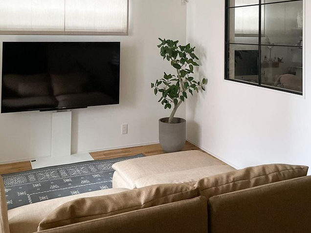 Устройство лёгкое из-за пластикового корпуса, и устойчиво чувствует себя на ножках. Узкие рамки позволяют ему сливаться с окружающей средой. Под телевизором хватит места для саундбара или иного малогабаритного прибора. На подставке предусмотрен держатель кабелей, который соберёт проводники воедино, чтобы те не выглядывали из-за панели.