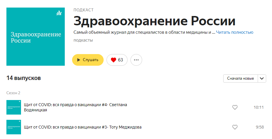 Проект «Щит от COVID: вся правда о вакцинации» в формате подкаста на сервисе «Яндекс.Музыка»