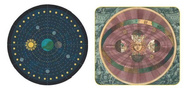 Гелиоцентрическая система возникла в противовес геоцентрической системе мира в Античности, но широкое распространение получила в XVI-XVII вв.