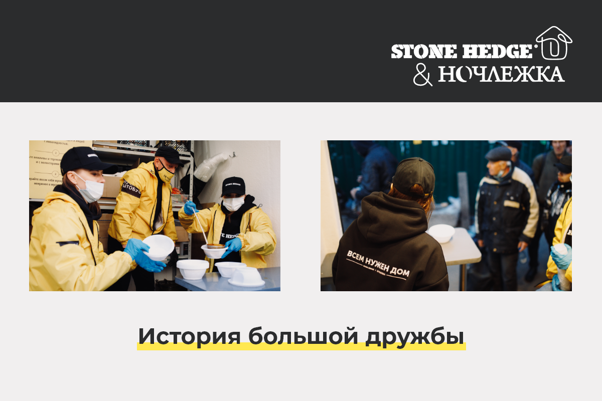 «Ночлежка» подвела первые итоги совместной работы со STONE HEDGE. Девелопер запустил проект КСО в апреле 2021 года, став генеральным партнером благотворительной организации в Москве. STONE HEDGE работает с «Ночлежкой» по трем направлениям: трудоустройство подопечных «Ночлежки» в штат группы компаний, финансовая поддержка благотворительной организации и участие в волонтерских рейсах «Ночного автобуса». Девелопер в программе корпоративной социальной ответственности делает акцент именно на трудоустройстве клиентов «Ночлежки» в штат группы компаний, поскольку получение работы — реальная возможность вернуться с улицы в нормальную жизнь для тех, кто действительно хочет этого и готов. Потеря работы — одна из основных причин бездомности в Москве, и за счет поддерживаемого трудоустройства STONE HEDGE решает саму проблему, а не просто борется с последствиями. Более того, STONE HEDGE направил средства на поддержку всех проектов «Ночлежки», которые помогли партнеру оплатить расходы на хозяйственны