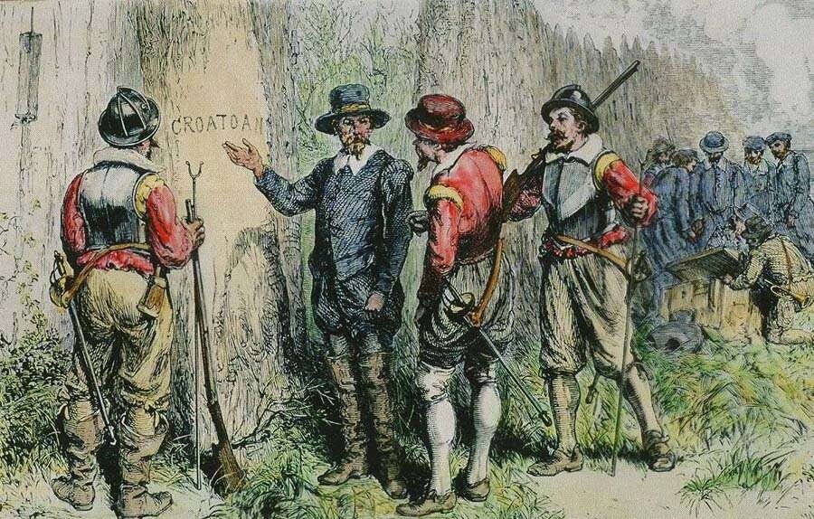 В конце августа 1587 году Уайт, который являлся главным колонии в Роанок, отплыл в Англию, для обновления запасов, а так же найти подкрепление. Дата возвращение была на 1588 год, но помешало исполниться испанская армада. Все корабли, которые могли помочь и устранить угрозу, были забраны. И в 1590 году Уайт смог только вернуться назад, на свой остов. Где увидел, в запущенном состоянии колонию. На деревьях были вырезаны слова «GROATOAN». Он решил разыскать людей, но поднялся шторм, поэтому пришлось вернуться. А на следующий поход, по поиску колонистов у него не было средств, поэтому уже больше нескольких сот лет судьба их так и не известна. В 1607 году поиски возобновились, но так же ни к чему не привели. На момент отъезда за запасами в Роаноке оставалось 115 человек, в том числе дочь и зять Уайта, а также внучка. Вождь Поухатан утверждал, что уничтожил людей, но историки опровергают эти данные. Как рассказывают историки, что конкретное место найти не возможно, где раньше находились коло