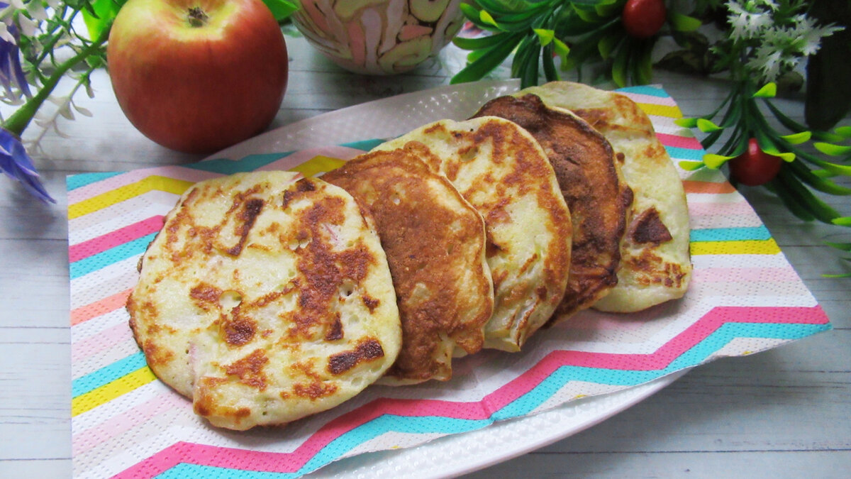 - Всем, кто старается придерживаться правильного питания, но испытывает огромное желание побаловать себя чем-нибудь «запрещенным», предлагаю опробовать рецепт яблочных оладий, в составе которых нет ни щепотки сахарного песка, ни единого грамма муки.