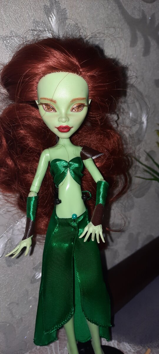 Здравствуйте. Имя для куколки придумал сын. Правда с продолжением - Аурелия Фигулия. Но вторую часть решено было не использовать из-за неблагозвучия) После решения попробовать сотворить куколку "для себя", не успела я и глазом моргнуть, как у меня уже оказалось четыре бедняжки. Дракулаура с разболтаными шарнирами и жуткими волосами, Спектра с поцарапанными, пожелтевшими ручками, Эбби с потертым личиком, стертыми блестками и потемневшими швами и Венера с разнотоном рук и ног и сломанной ногой. Образ для Венеры сложился сам собой. Понравилась картинка в интернете. Кстати, в процессе ничего общего с этой картинкой не осталось. Разве что медные, очень пышные кудрявые волосы. Про подготовку к ООАКу не пишу. Сейчас полно и мастер-классов и просто информации. Голову куколке сняла, волосы удалила, личико стерла. И безжалостно оторвала ногу. Паз для шарнира был залит серым клеем, похожим на эпоксидный. Хорошо, что не суперклеем, было бы тяжелее удалить. А этот выдрался вместе с кусочком гвоз