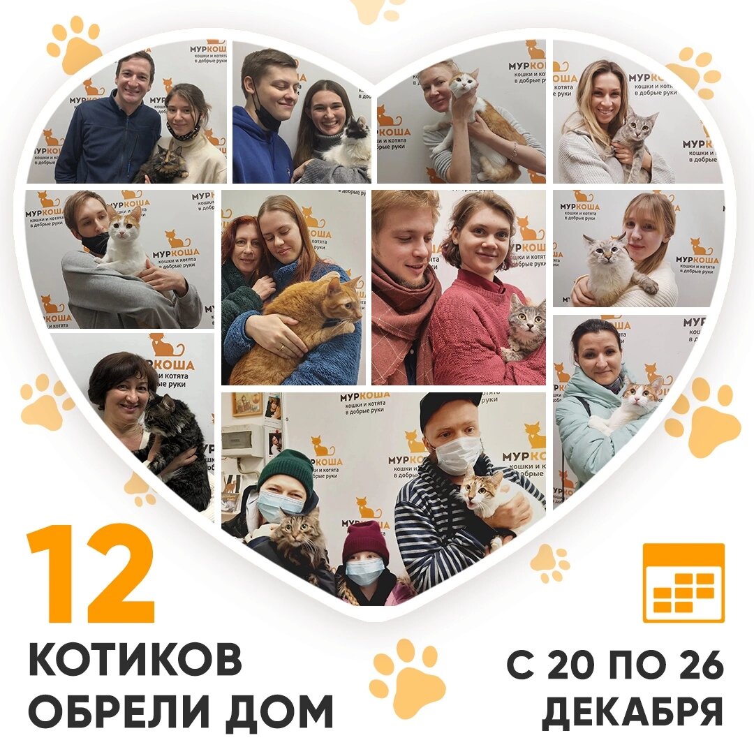 Друзья, в последнюю среду уходящего 2021 года мы подводим итоги работы за прошедшую неделю! Кто же стал счастливым выпускником Adoption центра «Муркоша» с 20 по 26 декабря? 😺 🥳 Итак, за прошедшую неделю домашними и любимыми стали 12 котиков! 1. Котёнок-девочка Манга, 8 месяцев И почти сразу мы получили первый привет из дома: «Все хорошо! Спасибо вам) переживаю, что в туалет не ходит, но ест, пьёт, прыгает, елке покоя не даёт 😁Обживаемся))». 🥰 2. Кот Фотон, 2.5 года 3. Котёнок-девочка Фрезия, 7 месяцев 4. Котёнок-мальчик Парафин, 6 месяцев (поехал в одну семью к нашей выпускнице Элис 😻) 5. Кот Пиксель, 6 лет 6-7. Кошка Ромми, 1.3 года, и котёнок-девочка Радужка, 10 месяцев (кошечки будут жить в одной семье, ура! 🥳) Первые приветы из дома, Ромми: «Игрушка и коробка - все, что нужно для счастья». 🥰 Первый совместный привет из дома. 😻 8. Котёнок-мальчик Джимми, 6 месяцев (котик поехал в семью к нашему выпускнику Лэсли 😻) Котик понемногу осваивается! 🥰 Сладкий сон дома. 🥰 9. Ко